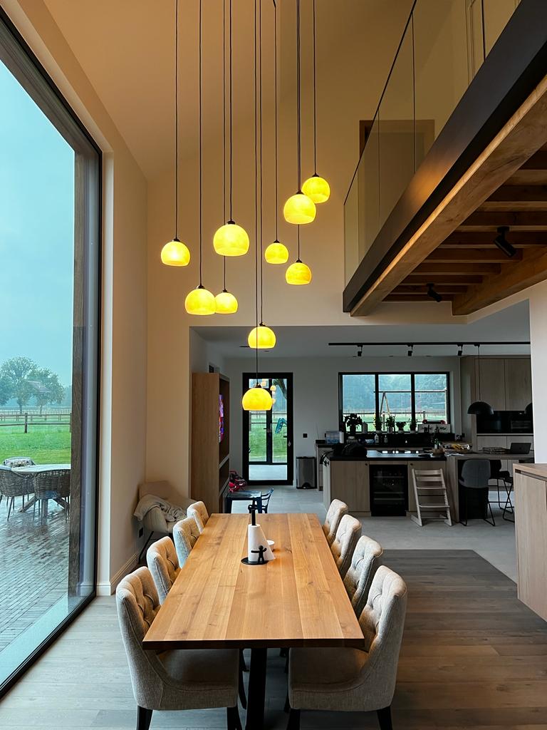 Door de juiste combinatie van formaat, afwerking en lichttemperatuur kreeg de kamer onmiddellijk meer karakter. De lamp werkte niet alleen als lichtbron, maar als een architecturaal element dat de ruimte samenhield. Hierdoor veranderde de sfeer zonder dat er meubels verschoven of decoratieve elementen toegevoegd moesten worden.