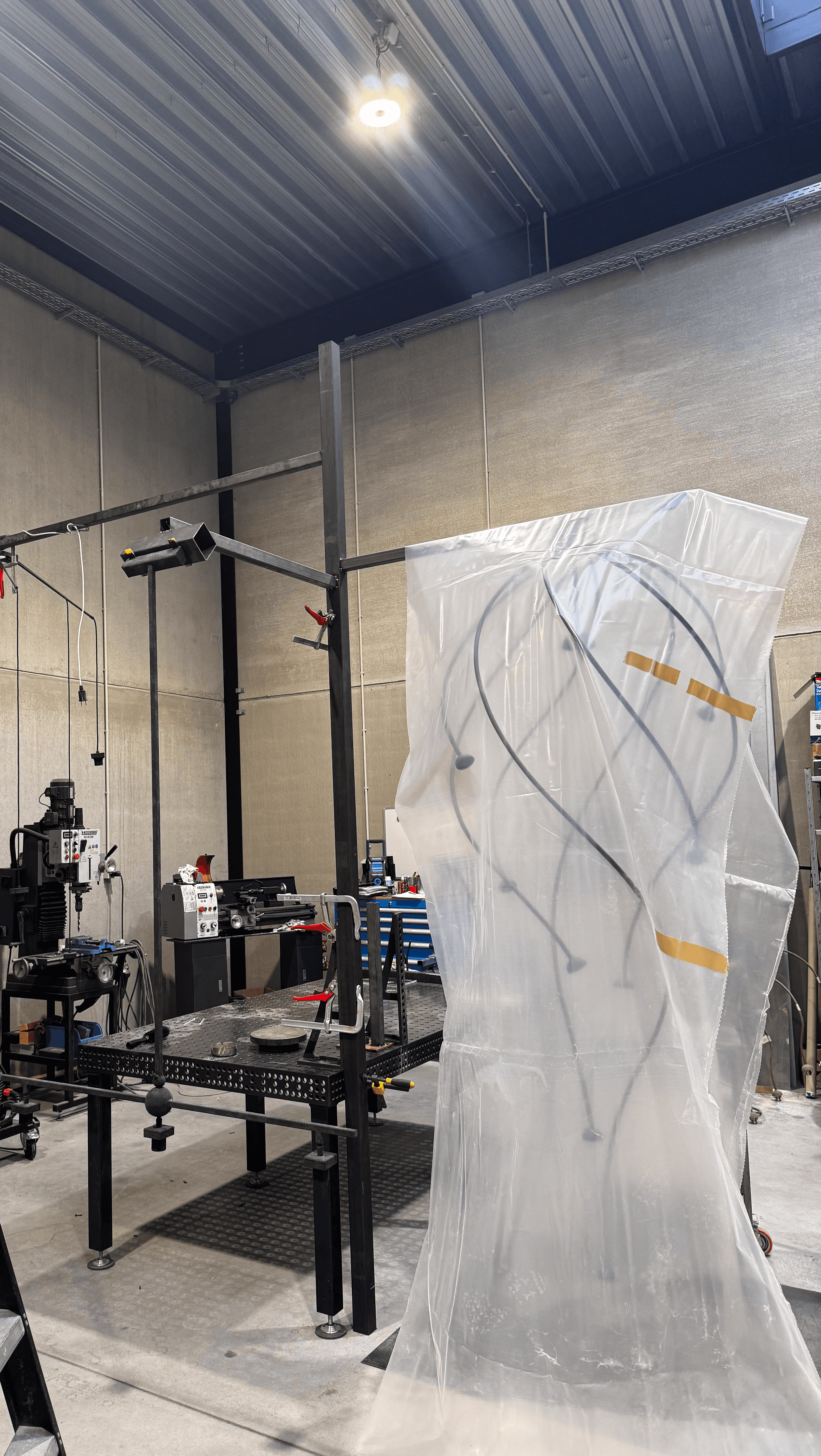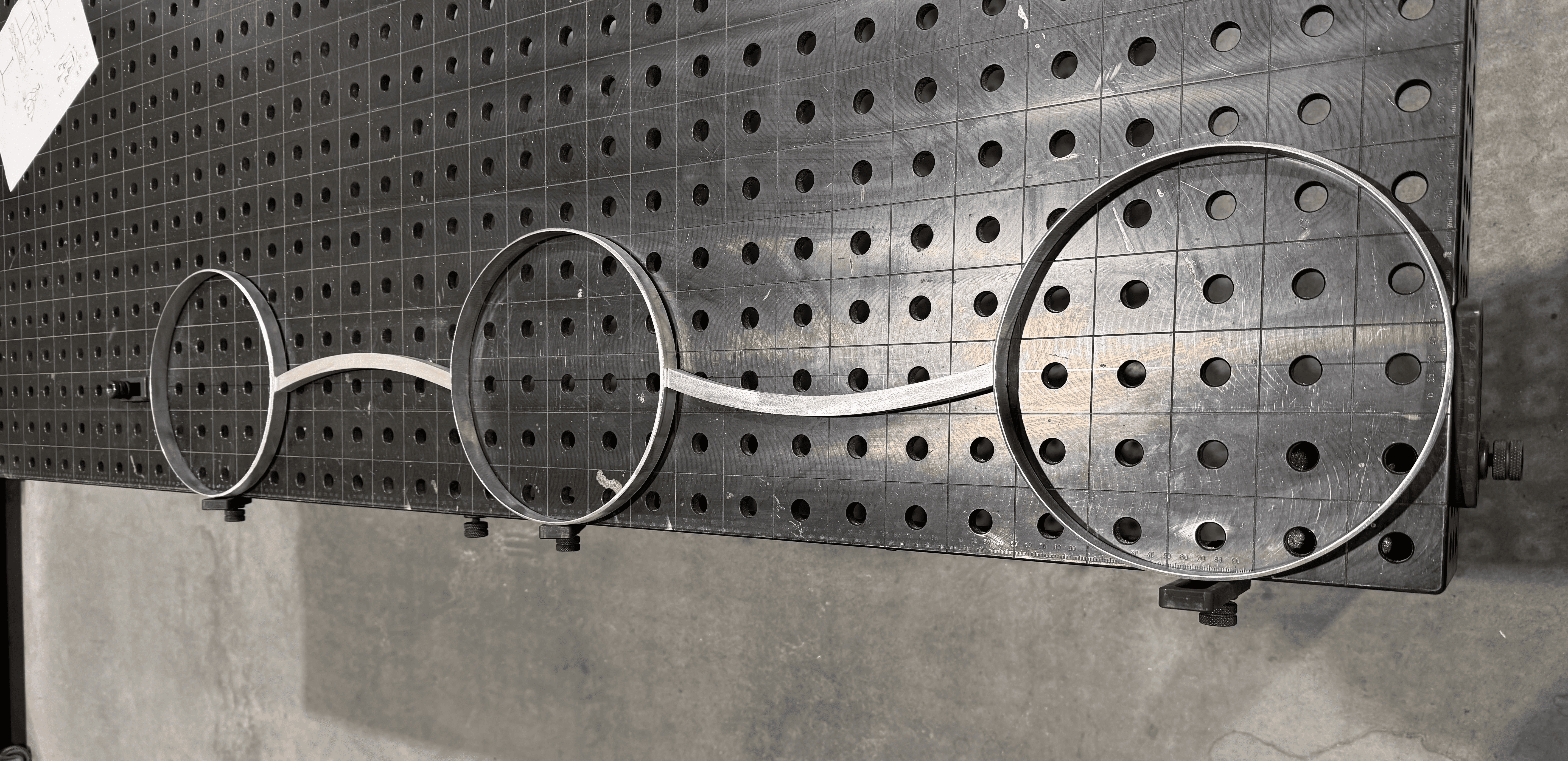 Metalen onderdelen worden handmatig gesneden en gevormd volgens het ontwerp. Dit vormt de basis van elk lichtobject.