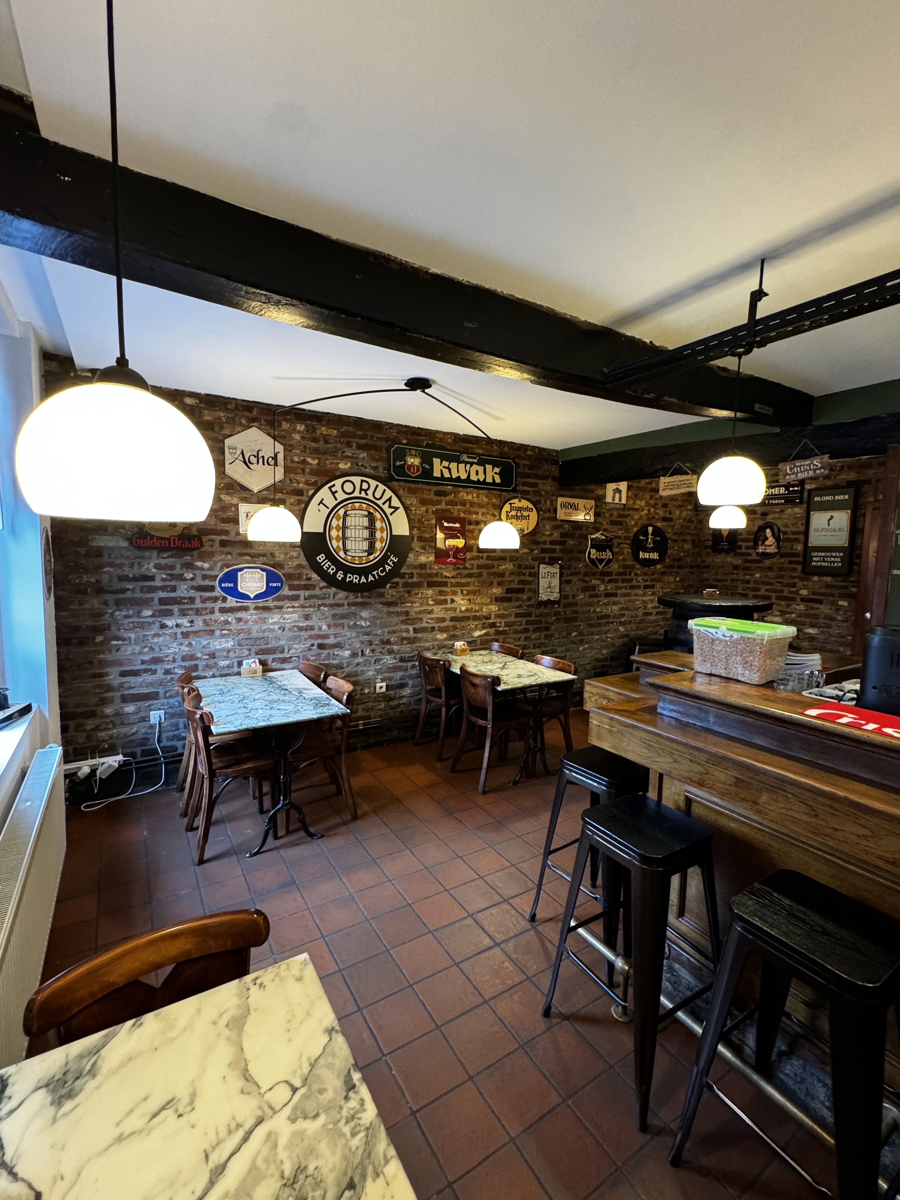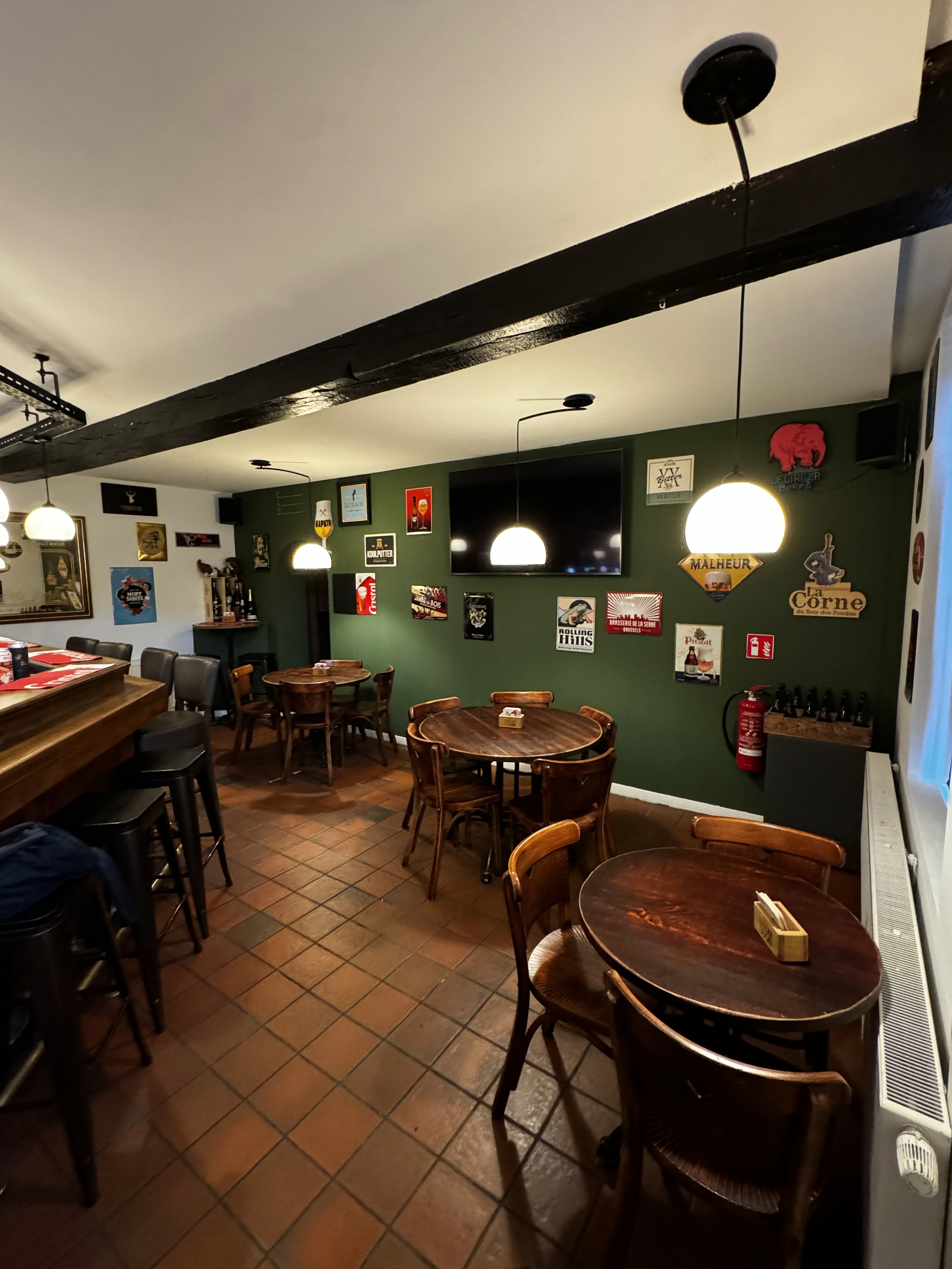 Voor dit authentiek bruin Café hebben we verlichting ontworpen en geplaatst die perfect aansluit bij de warme, vintage sfeer van het interieur. De combinatie van houten accenten, donkere kleuren en rustieke details vroeg om armaturen die karakter toevoegen zonder te overheersen.