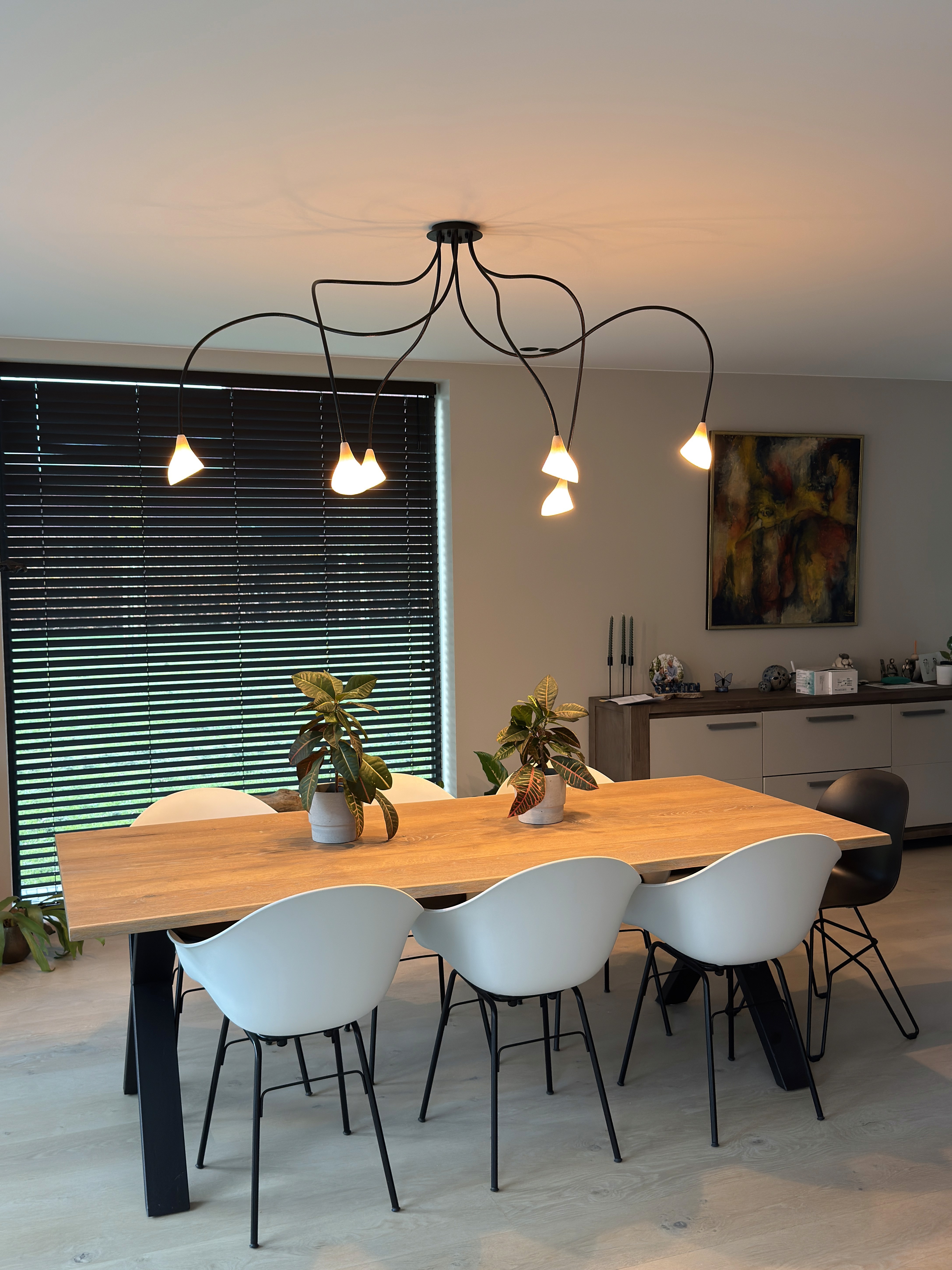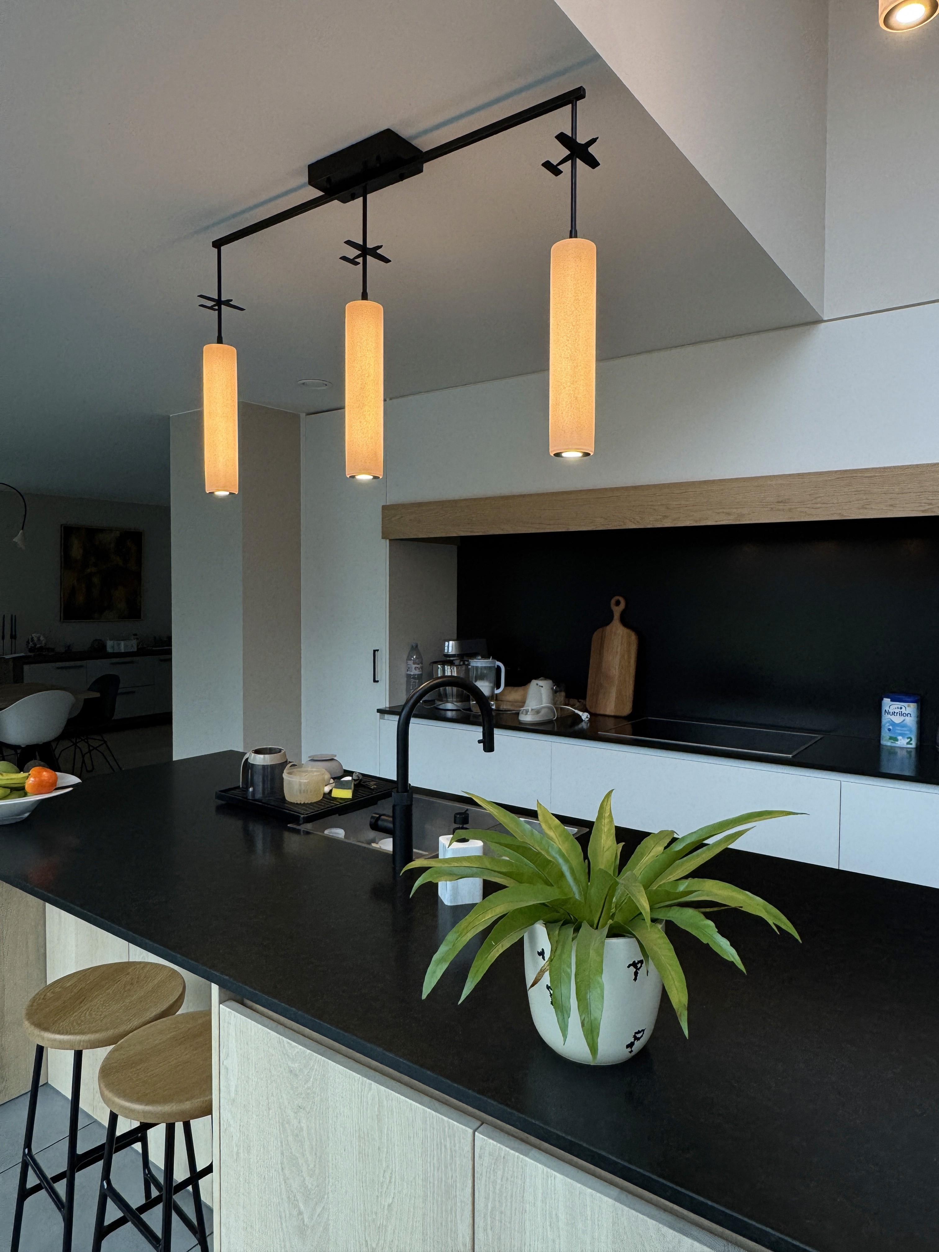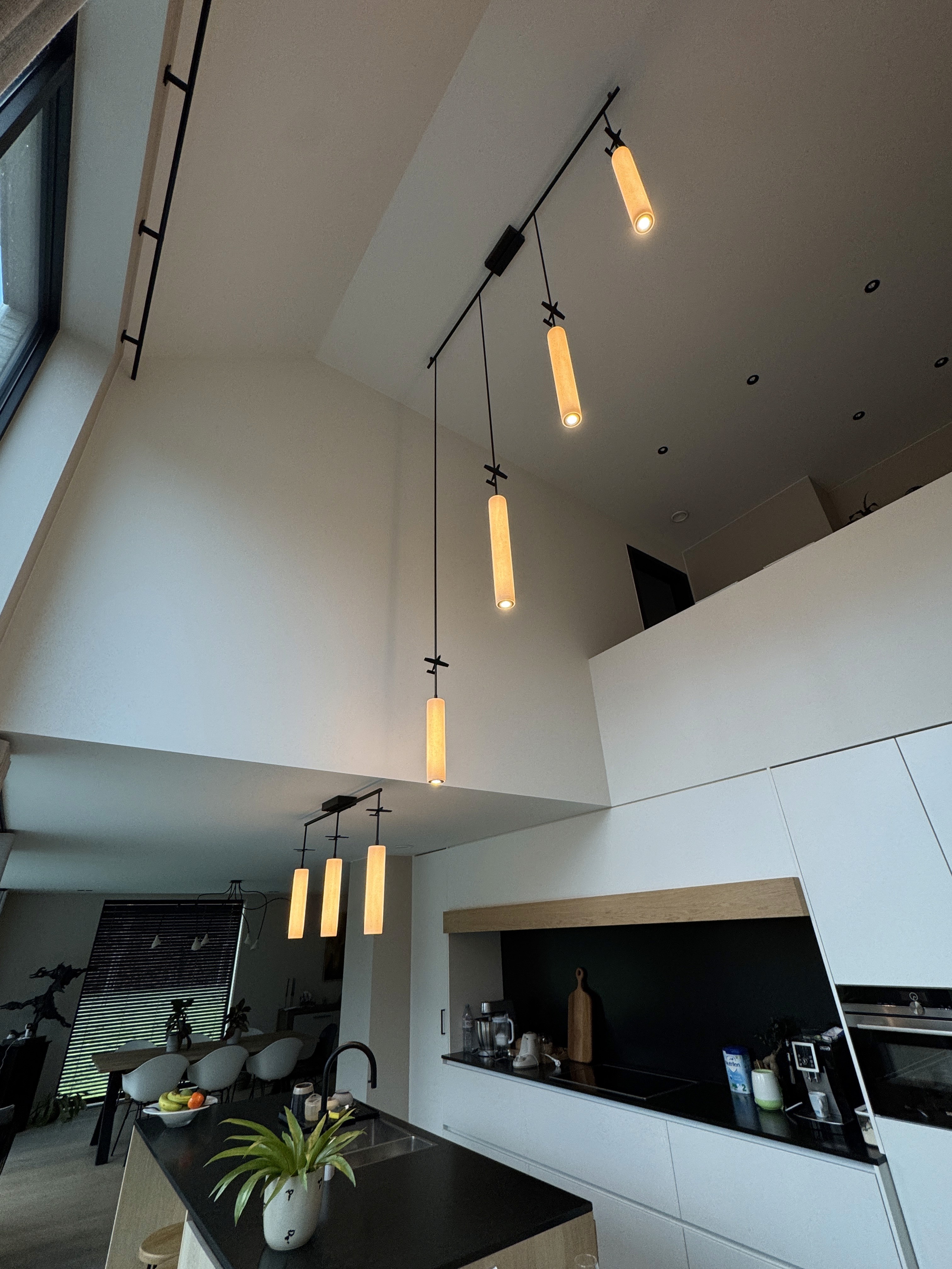Een tijdloze lichtinstallatie die rust uitstraalt, maar tegelijk karakter toevoegt. Functioneel waar nodig, sfeervol waar gewenst – en vooral: perfect in balans met de ruimte.