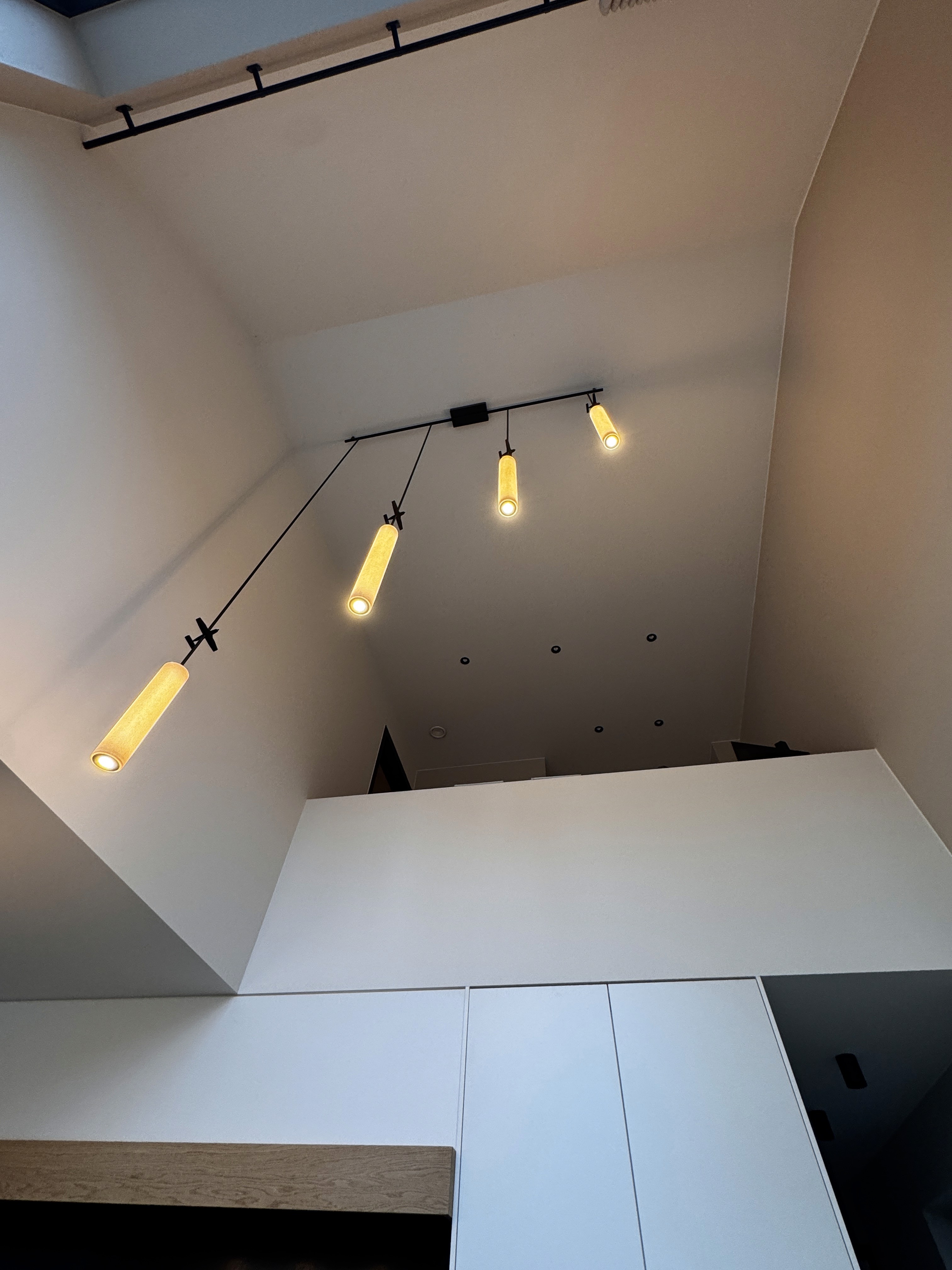 Standaardverlichting zou in deze ruimte of te klein ogen, of te massief worden.